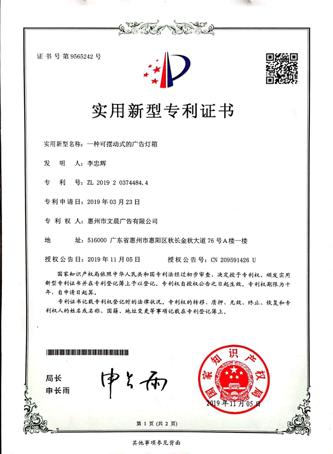 惠州市文晨燈箱科技有限公司,創建于2012年4月,坐落在惠州市惠陽區美麗的歷史文化名鎮秋長鎮,毗鄰革命先烈葉挺將軍故居。惠州市文晨燈箱科技有限公司創建以來,一直秉著客戶至上!品質為先!服務為重的經營理念。嚴格要求自我!以客戶的標準不斷完善產品的質量,追求更好的服務客戶...[了解更多]